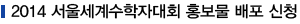 2014 서울세계수학자대회는 대회는 유관기관 및 관련학회의 홍보물 신청을 받고 있습니다. 온라인 배너 및 팝업과 대회 포스터 및 리플렛 등을 무료로 제공하고 있으니 많은 관심 바랍니다.