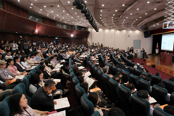 "National Assembly Forum on ICM, Science & Future Planning“ held on May 22, 2013 at the National Assembly Library in Seoul. This half day forum was a big success, and draw more than 400 people to the National Assembly. The presentations and panel discussions in the forum clarified expanding roles of modern mathematics. Mathematicians and political leaders had a rare chance of reviewing the progress of the SEOUL ICM 2014, and discussing ways of leaping forward in the areas of basic science.